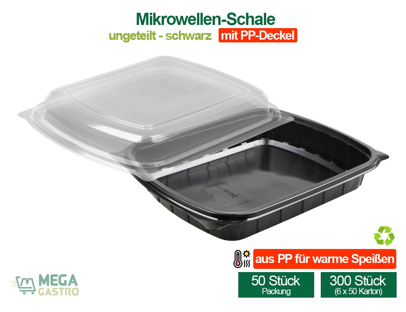Mikrowellen Schale ungeteilt (mit Deckel) – 50 Stk.